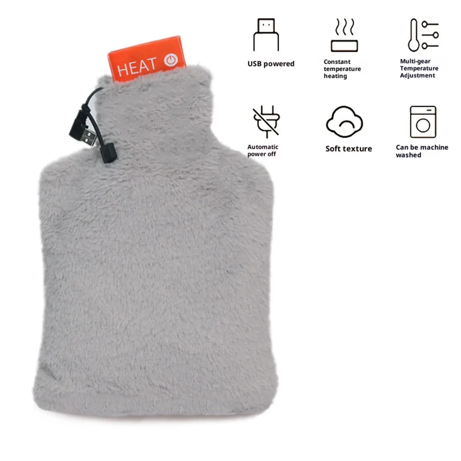 Temperature:3-speed Temperature Control Material:Plush Flannel,Cotton,Heating Element Color:Light-gray Size:30x20x3cm Power Supply:USB Direct Plug Product Category:Hand Warmer..